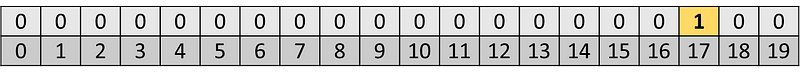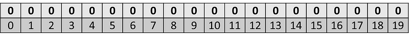 Define an array of 20 elements. The first row shows all the elements initialized with 0, which indicates that no data has been mapped in this array. The second row is the index number of each element of the array.