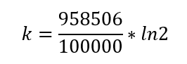 When we know m (suggested size of bit array) and n (expected number of inputs), we can calculate k (expected number of hash functions) using the following formula.