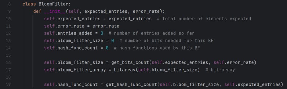 Now, we will go through the implementation of the class BloomFilter in the file /For Articles/Bloom Filter — Part 2/bloom_filter.py on GitHub.
